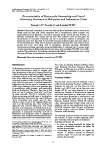 Putranto, Leksmono Suryo and Prasetijo, Joewono and Setyarini, Ni Luh Putu Shinta Eka (2015) Characteristics of Motorcycle Ownership and Use of University Students in Malaysian and Indonesian Cities. Civil Engineering Dimension. pp. 11-21.