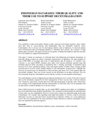 The availability of data in the public domain is quite common in developed countries, where widely used data such as socio-economic and demographic data are obtainable relatively easily. Unfortunately, this is not the case for developing countries such as Indonesia. As decision makers need well-prepared and well-managed database to formulate their policies, the existence of high quality data is essential. This paper will discuss the quality of Indonesian databases and their possible use of the database to support decentralisation.