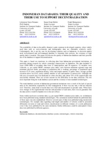 Putranto, Leksmono Suryo and Muller, Susan-Grant and Montgomery, Frank (2003) INDONESIAN DATABASES: THEIR QUALITY AND THEIR USE TO SUPPORT DECENTRALISATION. In: Seminar on Decentralisation in Indonesia, 6 September 2003, Leeds, United Kingdom.