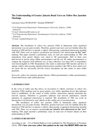 Putranto, Leksmono Suryo and Effendi, Randdy (2017) The Understanding of Greater Jakarta Road Users on Yellow Box Junction Markings. In: The 12th Eastern Asia Society for Transportation Studies (EASTS) Conference, 18-20 September 2017, Ho Chi Minh City.