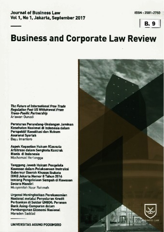 Gunadi, Ariawan The Future of International Free Trade Regulation Post US Withdrawal From Trans-Pacific Partnership. Business and Corporate Law Review. ISSN 2581-2750