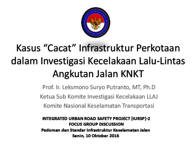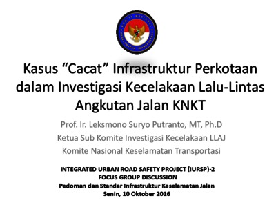 2016 Kasus Cacat Infrastruktur Perkotaan pada Investigasi Kecelakaan LLAJ-FGD IndIi.pdf - Presentation Download (3MB) | Preview |