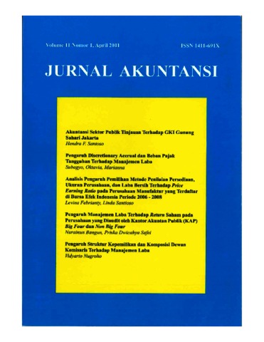 Santioso, Linda (2011) Analisis Pengaruh Pemilihan Metode Penilaian Persediaan, Ukuran Perusahaan, dan Laba Bersih Terhadap Price Earning Ratio pada Perusahaan Manufaktur yang Terdaftar di Bursa Efek Indonesia Periode 2006 - 2008. Karya Ilmiah Dosen, 11 (1). pp. 377-396. ISSN 1411-691X