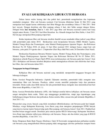 Handoyo, Sarwo Edy (2011) EVALUASI KEBIJAKAN LIBUR CUTI BERSAMA. Karya Ilmiah Dosen.