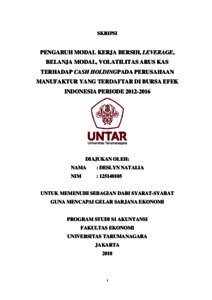 Natalia, Deslyn (2018) PENGARUH MODAL KERJA BERSIH, LEVERAGE, BELANJA MODAL, VOLATILITAS ARUS KAS TERHADAP CASH HOLDINGPADA PERUSAHAAN MANUFAKTUR YANG TERDAFTAR DI BURSA EFEK INDONESIA PERIODE 2012-2016. Skripsi thesis, Universitas Tarumanagara.