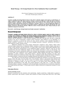 Tunjungsari, Hetty Kurnia (2011) Retail Therapy : Do Foreign Brands Give More Satisfaction Than Local Brands? Karya Ilmiah Dosen.