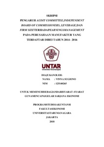 Kata kunci: earnings management, audit committee, independent board of commissioners, leverage, firm size.