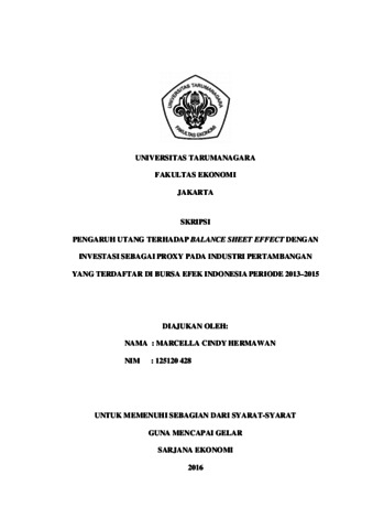 Hermawan, Marcella Cindy (2016) PENGARUH UTANG TERHADAP BALANCE SHEET EFFECT DENGAN INVESTASI SEBAGAI PROXY PADA INDUSTRI PERTAMBANGAN YANG TERDAFTAR DI BURSA EFEK INDONESIA PERIODE 2013–2015. Skripsi thesis, Universitas Tarumanagara.