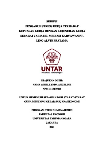ANGELINE, SHELLYNDA (2021) PENGARUH STRESS KERJA TERHADAP KEPUASAN KERJA DENGAN KEJENUHAN KERJA SEBAGAI VARIABEL MEDIASI KARYAWAN PT. LINO ALVIN PRATAMA. Skripsi thesis, Universitas Tarumanagara.