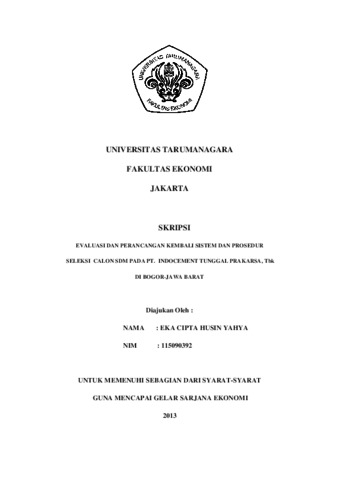Yahya, Eka Cipta Husin (2013) EVALUASI DAN PERANCANGAN KEMBALI SISTEM DAN PROSEDUR SELEKSI CALON SDM PADA PT.INDOCEMENT TUNGGAL PRAKARSA,Tbk DI BOGOR-JAWA BARAT. Skripsi thesis, Universitas Tarumanagara.