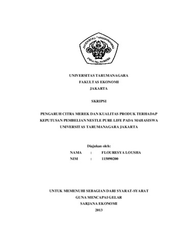 Lousha, Flouresya (2013) PENGARUH CITRA MEREK DAN KUALITAS PRODUK TERHADAP KEPUTUSAN PEMBELIAN NESTLE PURE LIFE PADA MAHASISWA UNIVERSITAS TARUMANAGARA JAKARTA. Skripsi thesis, Universitas Tarumanagara.