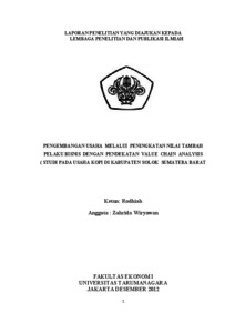 Rodhiah, Rodhiah and Wiryawan, Zahrida Zainal (2012) PENGEMBANGAN USAHA MELALUI PENINGKATAN NILAI TAMBAH PELAKU BISNIS DENGAN PENDEKATAN VALUE CHAIN ANALYSIS (STUDI PADA USAHA KOPI DI KABUPATEN SOLOK SUMATERA BARAT). Karya Ilmiah Dosen.