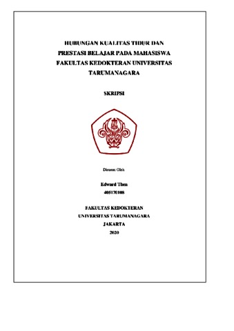 THEN, EDWARD (2020) HUBUNGAN KUALITAS TIDUR DAN PRESTASI BELAJAR PADA MAHASISWA FAKULTAS KEDOKTERAN UNIVERSITAS TARUMANAGARA. Skripsi thesis, Universitas Tarumanagara.