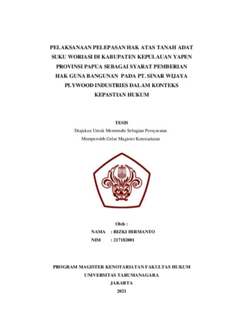 Hirmanto, Rizki (2021) Pelaksanaan Pelepasan Hak Atas Tanah Adat Suku Woriasi Di Kabupaten Kepulauan Yapen Provinsi Papua Sebagai Syarat Pemberian Hak Guna Bangunan Pada PT. Sinar Wijaya Plywood Industries Dalam Konteks Kepastian Hukum. Masters thesis, Universitas Tarumanagara.
