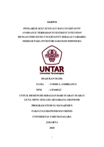 ANDREANUS, YOSHUA (2020) PENGARUH SELF EFFICACY DAN UNCERTAINTY AVOIDANCE TERHADAP INVESTMENT INTENTION DENGAN PERCEIVED UNCERTAINTY SEBAGAI VARIABEL MEDIASI PADA INVESTOR SAHAM DI INDONESIA. Skripsi thesis, Universitas Tarumanagara.