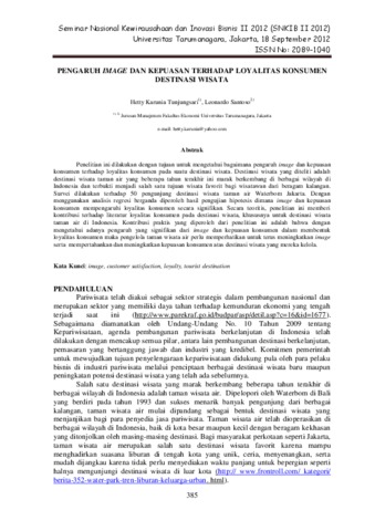 Tunjungsari, Hetty Karunia and Santoso, Leonardo (2012) PENGARUH IMAGE DAN KEPUASAN TERHADAP LOYALITAS KONSUMEN DESTINASI WISATA. Karya Ilmiah Dosen. ISSN 2089 - 1040