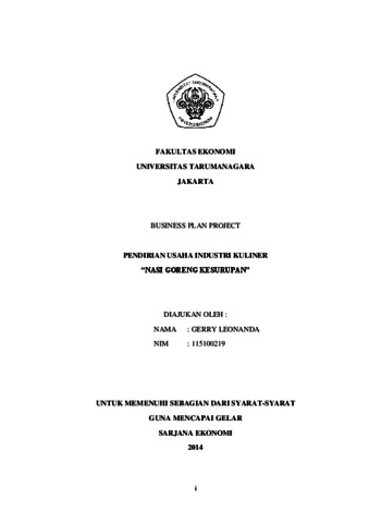 Leonanda, Gerry (2014) BUSINESS PLAN PROJECT PENDIRIAN USAHA INDUSTRI KULINER “NASI GORENG KESURUPAN”. Skripsi thesis, Universitas Tarumanagara.
