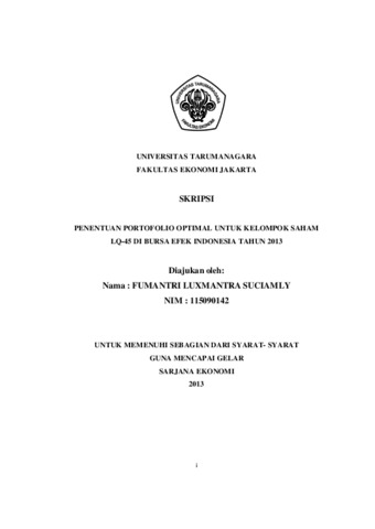 Suciamly, Fumantri Luxmantra (2013) PENENTUAN PORTOFOLIO OPTIMAL UNTUK KELOMPOK SAHAM LQ-45 DI BURSA EFEK INDONESIA TAHUN 2013. Skripsi thesis, Universitas Tarumanagara.