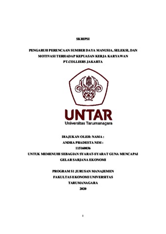 PRADESTA, ANDRA (2020) PENGARUH PERENCAAN SUMBER DAYA MANUSIA, SELEKSI, DAN MOTIVASI TERHADAP KEPUASAN KERJA KARYAWAN PT.COLLIERS JAKARTA. Skripsi thesis, Universitas Tarumanagara.