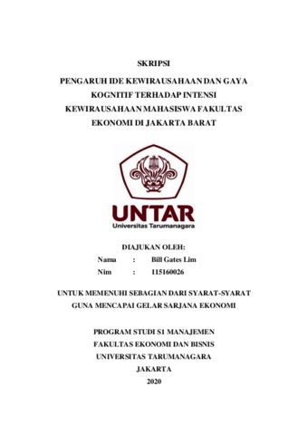Lim, Bill Gates (2020) PENGARUH IDE KEWIRAUSAHAAN DAN GAYA KOGNITIF TERHADAP INTENSI KEWIRAUSAHAAN MAHASISWA FAKULTAS EKONOMI DI JAKARTA BARAT. Skripsi thesis, Universitas Tarumanagara.