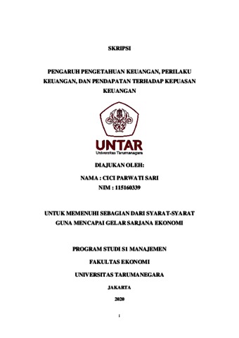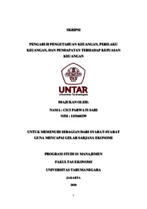 SARI, CICI PARWATI (2020) PENGARUH PENGETAHUAN KEUANGAN, PERILAKU KEUANGAN, DAN PENDAPATAN TERHADAP KEPUASAN KEUANGAN. Skripsi thesis, Universitas Tarumanagara.