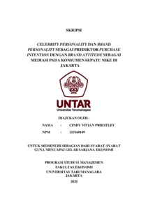 PRIESTLEY, CINDY VIVIAN (2020) CELEBRITY PERSONALITY DAN BRAND PERSONALITY SEBAGAI PREDIKTOR PURCHASE INTENTION DENGAN BRAND ATTITUDE SEBAGAI MEDIASI PADA KONSUMEN SEPATU NIKE DI JAKARTA. Skripsi thesis, Universitas Tarumanagara.