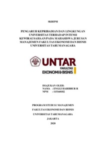 Kata kunci: Kepribadian, Lingkungan Universitas, Intensi Kewirausahaan