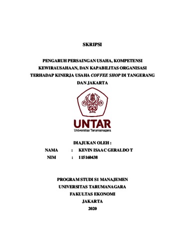 GERALDO T, KEVIN ISAAC (2020) PENGARUH PERSAINGAN USAHA, KOMPETENSI KEWIRAUSAHAAN, DAN KAPABILITAS ORGANISASI TERHADAP KINERJA USAHA COFFEE SHOP DI TANGERANG DAN JAKARTA. Skripsi thesis, Universitas Tarumanagara.