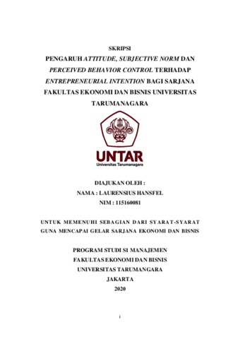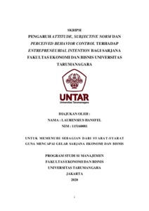 HANSFEL, LAURENSIUS (2020) PENGARUH ATTITUDE, SUBJECTIVE NORM DAN PERCEIVED BEHAVIOR CONTROL TERHADAP ENTREPRENEURIAL INTENTION BAGI SARJANA FAKULTAS EKONOMI DAN BISNIS UNIVERSITAS TARUMANAGARA. Skripsi thesis, Universitas Tarumanagara.