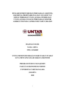 LIDYA, LIDYA (2020) PENGARUH PERTUMBUHAN PERUSAHAAN (GROWTH), LIKUIDITAS, PROFITABILITAS, DAN NON-DEBT TAX SHIELD TERHADAP UTANG JANGKA PENDEK DAN UTANG JANGKA PANJANG PERUSAHAAN SEKTOR AGRIKULTUR PADA LAPORAN BEI TAHUN 2016-2019. Skripsi thesis, Universitas Tarumanagara.