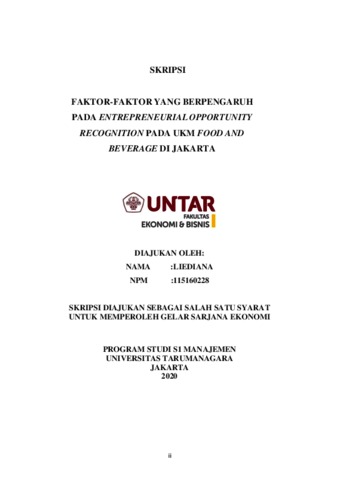 LIEDIANA, LIEDIANA (2020) FAKTOR-FAKTOR YANG BERPENGARUH PADA ENTREPRENEURIAL OPPORTUNITY RECOGNITION PADA UKM FOOD AND BEVERAGE DI JAKARTA. Skripsi thesis, Universitas Tarumanagara.
