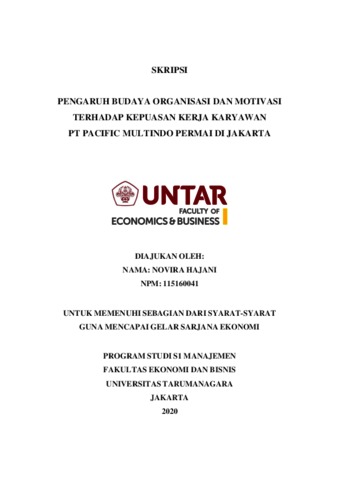 HAJANI, NOVIRA (2020) PENGARUH BUDAYA ORGANISASI DAN MOTIVASI TERHADAP KEPUASAN KERJA KARYAWAN PT PACIFIC MULTINDO PERMAI DI JAKARTA. Skripsi thesis, Universitas Tarumanagara.