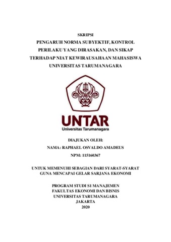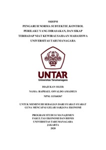AMADEUS, RAPHAEL OSVALDO (2020) PENGARUH NORMA SUBYEKTIF, KONTROL PERILAKU YANG DIRASAKAN, DAN SIKAP TERHADAP NIAT KEWIRAUSAHAAN MAHASISWA UNIVERSITAS TARUMANAGARA. Skripsi thesis, Universitas Tarumanagara.