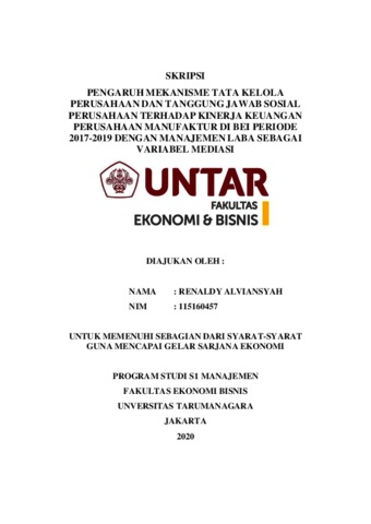 Kata kunci: mekanisme tata kelola perusahaan, tanggung jawab sosial perusahaan, manajemen laba, kinerja keuangan.