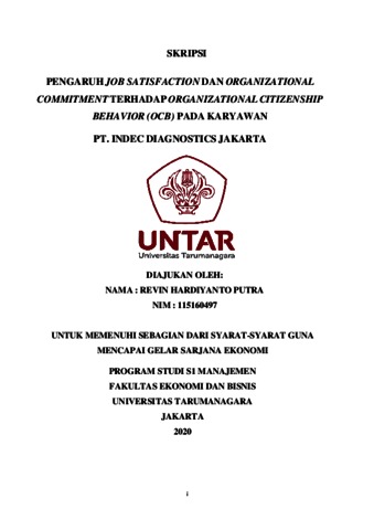 PUTRA, REVIN HARDIYANTO (2020) PENGARUH JOB SATISFACTION DAN ORGANIZATIONAL COMMITMENT TERHADAP ORGANIZATIONAL CITIZENSHIP BEHAVIOR (OCB) PADA KARYAWAN PT. INDEC DIAGNOSTICS JAKARTA. Skripsi thesis, Universitas Tarumanagara.