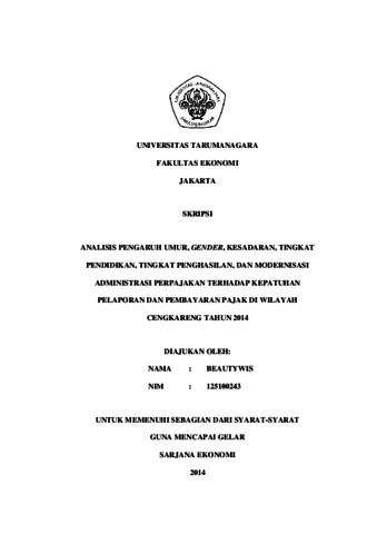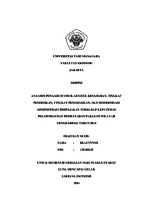BEAUTYWIS, BEAUTYWIS (2014) ANALISIS PENGARUH UMUR, GENDER, KESADARAN, TINGKAT PENDIDIKAN, TINGKAT PENGHASILAN, DAN MODERNISASI ADMINISTRASI PERPAJAKAN TERHADAP KEPATUHAN PELAPORAN DAN PEMBAYARAN PAJAK DI WILAYAH CENGKARENG TAHUN 2014. Skripsi thesis, UNIVERSITAS TARUMANAGARA.