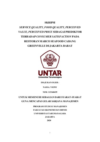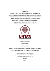 VIONY, VIONY (2020) SERVICE QUALITY, FOOD QUALITY, PERCEIVED VALUE, PERCEIVED PRICE SEBAGAI PREDIKTOR TERHADAP CONSUMER SATISFACTION PADA RESTORAN MARCO SEAFOOD CABANG GREENVILLE DI JAKARTA BARAT. Skripsi thesis, Universitas Tarumanagara.