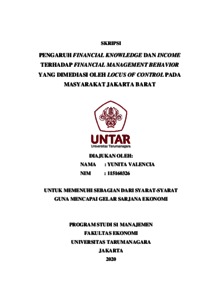 VALENCIA, YUNITA (2020) PENGARUH FINANCIAL KNOWLEDGE DAN INCOME TERHADAP FINANCIAL MANAGEMENT BEHAVIOR YANG DIMEDIASI OLEH LOCUS OF CONTROL PADA MASYARAKAT JAKARTA BARAT. Skripsi thesis, Universitas Tarumanagara.