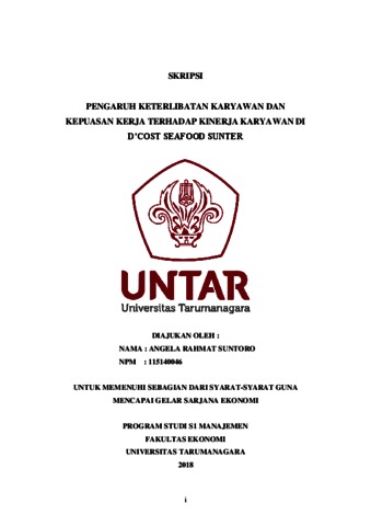 Suntoro, Angela Rahmat (2018) PENGARUH KETERLIBATAN KARYAWAN DAN KEPUASAN KERJA TERHADAP KINERJA KARYAWAN DI D’COST SEAFOOD SUNTER. Skripsi thesis, Universitas Tarumanagara.