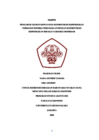Tamara, Esther (2020) PENGARUH UKURAN DEWAN DAN KONSENTRASI KEPEMILIKAN TERHADAP KINERJA PERUSAHAAN DENGAN KONSENTRASI KEPEMILIKAN SEBAGAI VARIABLE MODERASI. Skripsi thesis, UNIVERSITAS TARUMANAGARA.