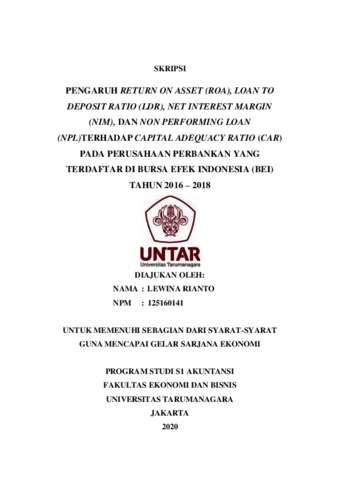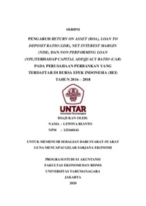 Rianto, Lewina (2020) PENGARUH RETURN ON ASSET (ROA), LOAN TO DEPOSIT RATIO (LDR), NET INTEREST MARGIN (NIM), DAN NON PERFORMING LOAN (NPL) TERHADAP CAPITAL ADEQUACY RATIO (CAR) PADA PERUSAHAAN PERBANKAN YANG TERDAFTAR DI BURSA EFEK INDONESIA (BEI) TAHUN 2016 – 2018. Skripsi thesis, UNIVERSITAS TARUMANAGARA.