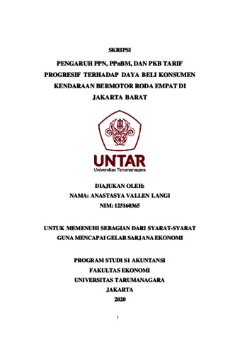 Langi, Anastasya Vallen (2020) PENGARUH PPN, PPnBM, DAN PKB TARIF PROGRESIF TERHADAP DAYA BELI KONSUMEN KENDARAAN BERMOTOR RODA EMPAT DI JAKARTA BARAT. Skripsi thesis, UNIVERSITAS TARUMANAGARA.