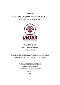 Andriany, Irine (2020) ANALISIS KEWAJIBAN PAJAK PADA PT. XXX UNTUK TAHUN PAJAK 2018. Skripsi thesis, Universitas Tarumanagara.