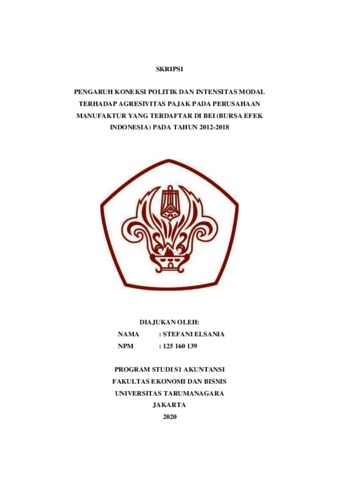 ELSANIA, STEFANI (2020) PENGARUH KONEKSI POLITIK DAN INTENSITAS MODAL TERHADAP AGRESIVITAS PAJAK PADA PERUSAHAAN MANUFAKTUR YANG TERDAFTAR DI BEI (BURSA EFEK INDONESIA) PADA TAHUN 2012-2018. Skripsi thesis, Universitas Tarumanagara.