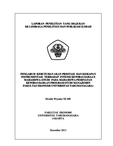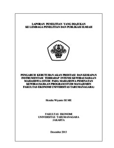 Wiyanto, Hendra (2013) PENGARUH KEBUTUHAN AKAN PRESTASI DAN KESIAPAN INSTRUMENTASI TERHADAP INTENSI KEWIRAUSAHAAN MAHASISWA (STUDI PADA MAHASISWA PEMINATAN KEWIRAUSAHAAN PROGRAM STUDI MANAJEMEN FAKULTAS EKONOMI UNIVERSITAS TARUMANAGARA). Karya Ilmiah Dosen.
