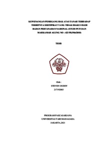 Ouddy, Steven (2021) Kewenangan Pemegang Hak Atas Tanah Terhadap Terbitnya Sertipikat Yang Tidak Diakui Oleh Badan Pertanahan Nasional (Studi Putusan Mahkamah Agung Nomor 423 PK/Pdt/2018). Masters thesis, Universitas Tarumanagara.