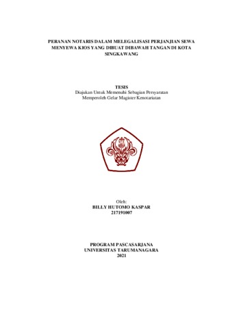 Kaspar, Billy Hutomo (2021) Peranan Notaris Dalam Melegalisasi Perjanjian Sewa Menyewa Kios Yang Dibuat Dibawah Tangan Di Kota Singkawang. Masters thesis, Universitas Tarumanagara.
