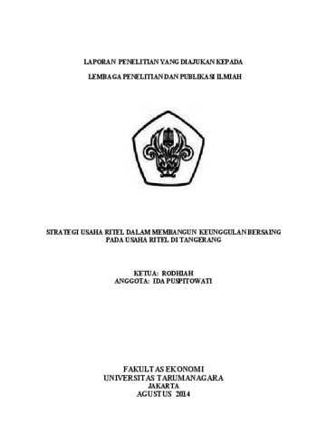 Rodhiah, Rodhiah and Puspitowati, Ida (2014) STRATEGI USAHA RITEL DALAM MEMBANGUN KEUNGGULAN BERSAING PADA USAHA RITEL DI TANGERANG. Karya Ilmiah Dosen.