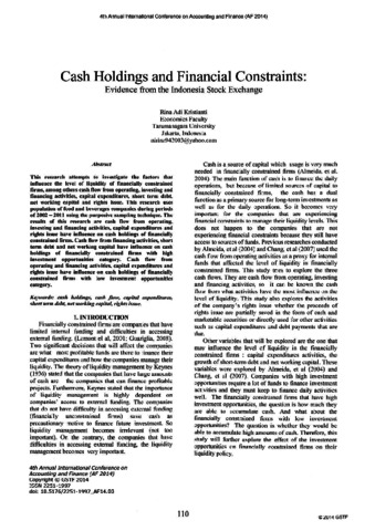 This research attempts to investigate the factors thatinfluence the level of liquidity of financially constrainedfirms, among others cash flow from operating, investing andfinancing activities, capital expenditures, short term debt,net working capital and rights issue. This research usespopulation of food and beverages companies during periodsof 2002 - 2011 using the purposive sampling technique. Theresults of this research are cash flow from operating,investing and financing activities, capital expenditures andrights issue have influence on cash holdings of financiallyconstrained firms. Cash flow from financing activities, shortterm debt and net working capital have influence on cashholdings of financially constrained firms with highinvestment opportunities category. Cash flow fromoperating and financing activities, capital expenditures andrights issue have influence on cash holdings of financiallyconstrained firms with low investment opportunitiescategory.