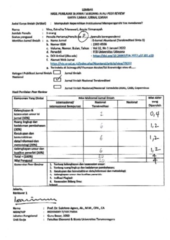 Estralita, review (2022) Review Mampukah Kepemilikan Institusional Mempengaruhi Tax Avoidance? Mampukah Kepemilikan Institusional Mempengaruhi Tax Avoidance?, 32 (1). pp. 139-154. ISSN 2302-8556